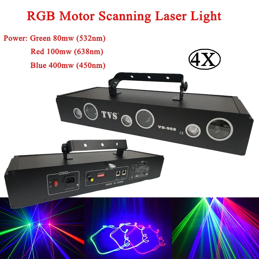 BEST SELLER 4Pcs/Lot RGB Motor Scanning Laser Beam Light Stage Lighting Effect Projector Lights DJ Dance Bar Xm