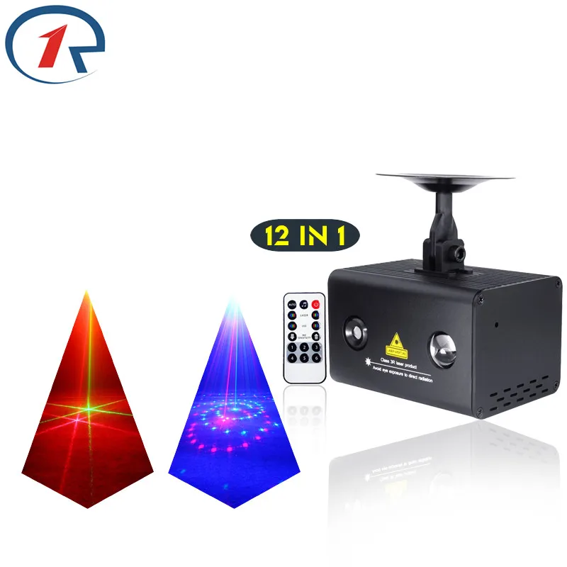 ZjRight IR Remote 12pattern Red Green Blue Laser Lighting Colorful Led effect Stage Light KTV disco